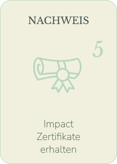 Wir bieten die fälschungssichere Dokumentation unserer Projekte.Mit unseren Blockchain-basierten Impact-Zertifikaten wird jede Maßnahme – von Aufforstung bis Biodiversität – eindeutig verortet, fälschungssicher dokumentiert und jederzeit nachvollziehbar gemacht. Vergleichbar mit einem digitalen Kassenbuch: Jeder Eintrag wird chronologisch gespeichert und kann später nicht mehr gelöscht oder verändert werden. So entsteht ein transparenter Nachweis, der Greenwashing ausschließt und Projektpartnern echte Sicherheit gibt: Jeder Beitrag ist sichtbar, überprüfbar und belegt nachhaltigen Impact.Zusätzlich stellen wir mit unserer Partneragentur 4zu5 sicher, dass diese Wirkung auch nach außen sichtbar wird – modern, frisch und professionell kommuniziert. So profitieren nicht nur wir, sondern auch unsere Projektpartner von einer starken öffentlichen Wahrnehmung und können ihren eigenen Einsatz für Nachhaltigkeit klar und glaubwürdig zeigen.